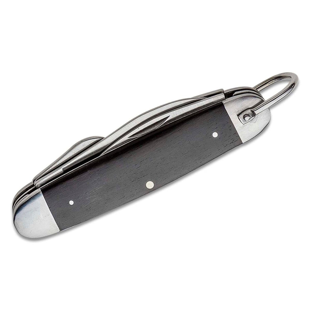Das BÖKER Classic Taschenmesser Steel ist nicht nur ein Messer; Es ist ein vielseitiges Multitool, das Ihre alltäglichen Aufgaben vereinfacht. Dieses Wunderwerk im Taschenformat wurde mit Blick auf Präzision und Funktionalität gefertigt und ist ein unverzichtbarer Begleiter für verschiedene Situationen. Hochwertiger Edelstahl: Die Klingen, der Flaschenöffner und der Dosenöffner sind alle aus robustem 440er Edelstahl gefertigt. Diese Materialwahl gewährleistet außergewöhnliche Langlebigkeit, Schärfe und Zuverlässigkeit. Robuste Beschläge: Die Beschläge sind aus Stahl gefertigt, was die allgemeine Haltbarkeit und Festigkeit des Werkzeugs erhöht. Verlassen Sie sich darauf, dass es einer harten Beanspruchung standhält, ohne dass die Leistung darunter leidet. Lanyard-Ring: Der integrierte Lanyard-Ring ist eine durchdachte Ergänzung, mit der Sie ihn zum einfachen und bequemen Tragen an einem Schlüsselbund oder Schlüsselband befestigen können. Sie müssen nie wieder nach Ihrem vertrauenswürdigen Multitool suchen. Griff aus echtem Palisander: Der Griff aus echtem Palisander verleiht nicht nur einen Hauch von Eleganz, sondern bietet auch einen bequemen und sicheren Halt. Seine reichhaltige, natürliche Schönheit macht es zu einem Blickfang in Ihrer Sammlung. Praktisches klassisches Taschenmesser-Design: Dieses Multitool-Design ist intuitiv und praktisch. Ganz gleich, ob Sie schneiden, öffnen oder andere alltägliche Aufgaben erledigen müssen, es ist für die problemlose Bewältigung all dieser Aufgaben gerüstet.