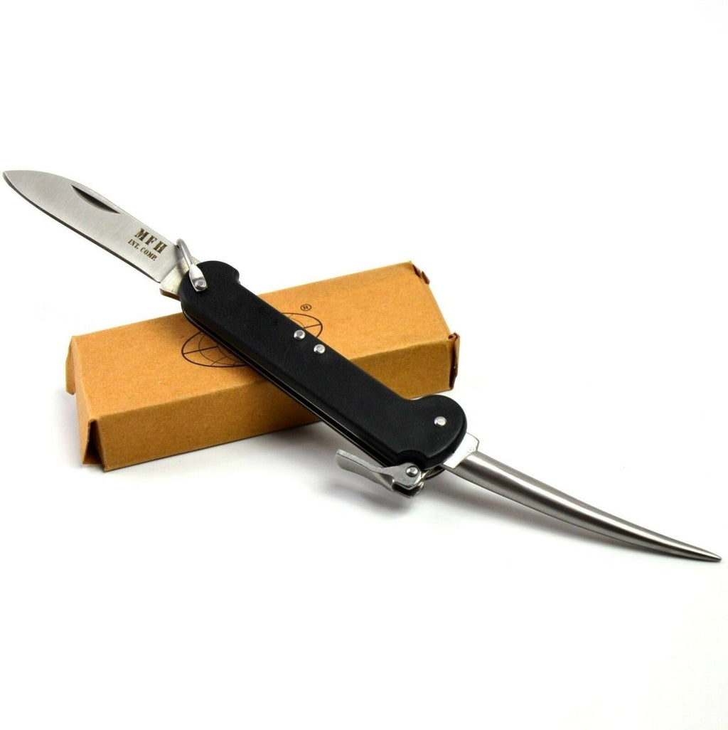 Reproduktion eines Taschenmessers der deutschen Marine von der Firma MFH. Der Marlinspike verfügt über ein Sicherheitsschlosssystem und eine Lanyard-Schlaufe. Mit diesem Werkzeug lassen sich schwierige Knoten lösen, das Messer ist besonders bei Seglern beliebt.