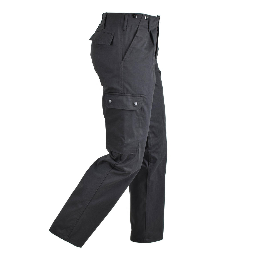 - Diese Hose wird von der renommierten Marke MFH hergestellt, die für ihre hochwertigen Produkte im Militärstil bekannt ist, und wird ihrem Ruf gerecht. Mit dieser vielseitigen schwarzen Cargohose genießen Sie die Funktionalität und Haltbarkeit des vom deutschen Militär inspirierten Designs.