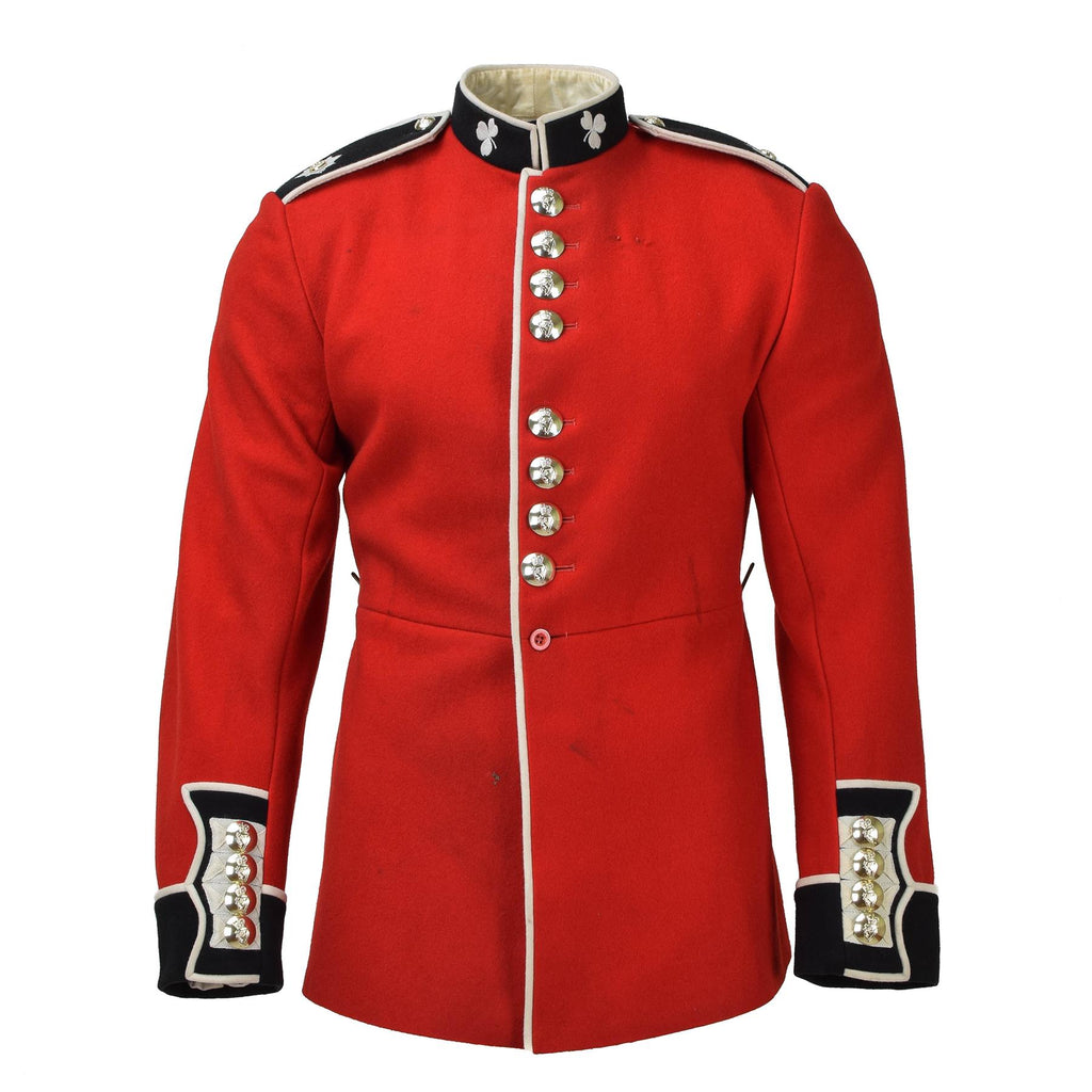 Diese echte britische Tunika der britischen Armee -Jacke in einem auffälligen roten Kleid scharlachrote Farbe mit rot -weißem Trimmen ist ein bemerkenswertes Stück Militärgeschichte. Diese Uniform besteht aus einer hochwertigen Mischung aus 95% Wolle und 5% Nylon und bietet nicht nur langlebig, sondern auch eine hervorragende Isolierung. Die Jacke verfügt über goldene Knöpfe, die dem Gesamtdesign einen Hauch von Eleganz und Authentizität verleihen. Der Stand-up-Kragen strahlt ein Gefühl der Autorität aus, während die Manschetten, die schwarz gedreht wurden, einen stilvollen Kontrast verleihen.