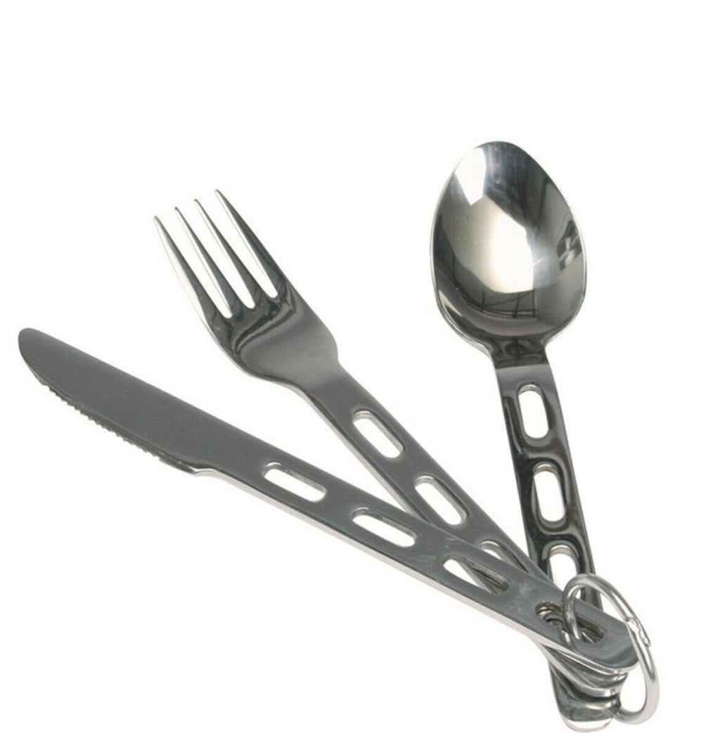 Das Wanderbesteck-Set von Mil Tec ist eine praktische und zuverlässige Lösung für Outdoor-Enthusiasten. Dieses 3-teilige Set umfasst Messer, Gabel und Löffel, alles aus langlebigem Edelstahl.