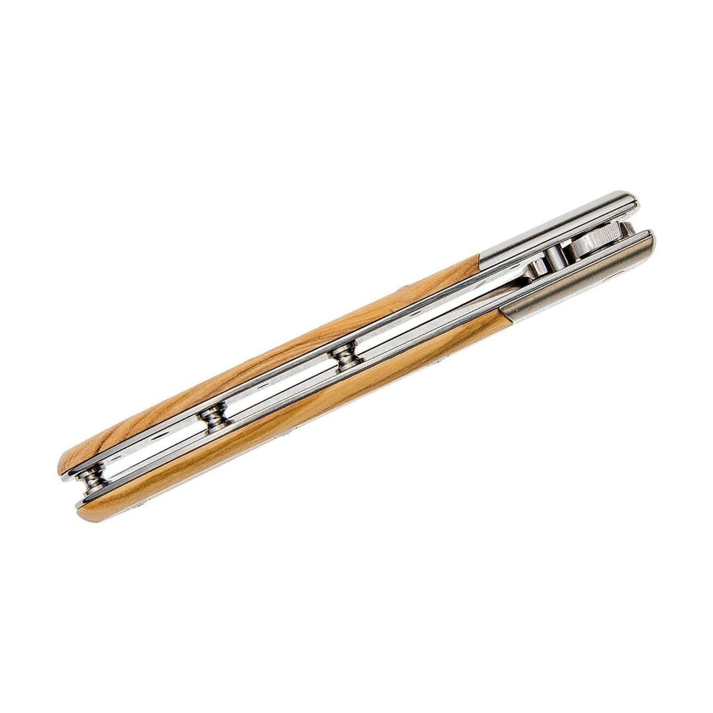 • Der Griff aus Olivenholz zeigt eine einzigartige natürliche Maserung. Edelstahlrahmen sorgen für Stabilität und einen polierten, klassischen Touch. Das Messer vereint Eleganz mit Haltbarkeit und eignet sich daher für sowohl für den täglichen Gebrauch als auch für besondere Anlässe.