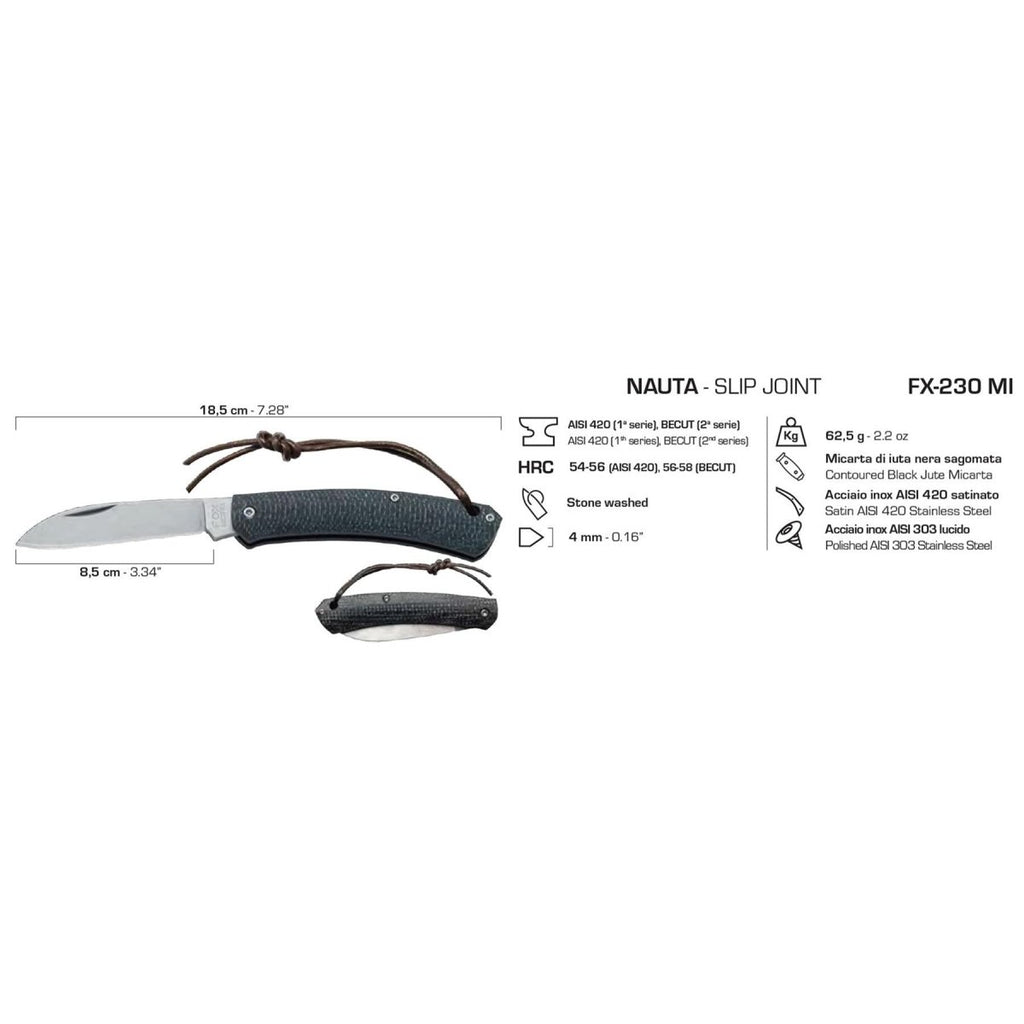 Fox Knives NAUTA kompaktes Taschenmesser taktisches 420C-Stahl-Klappwerkzeug-Micarta