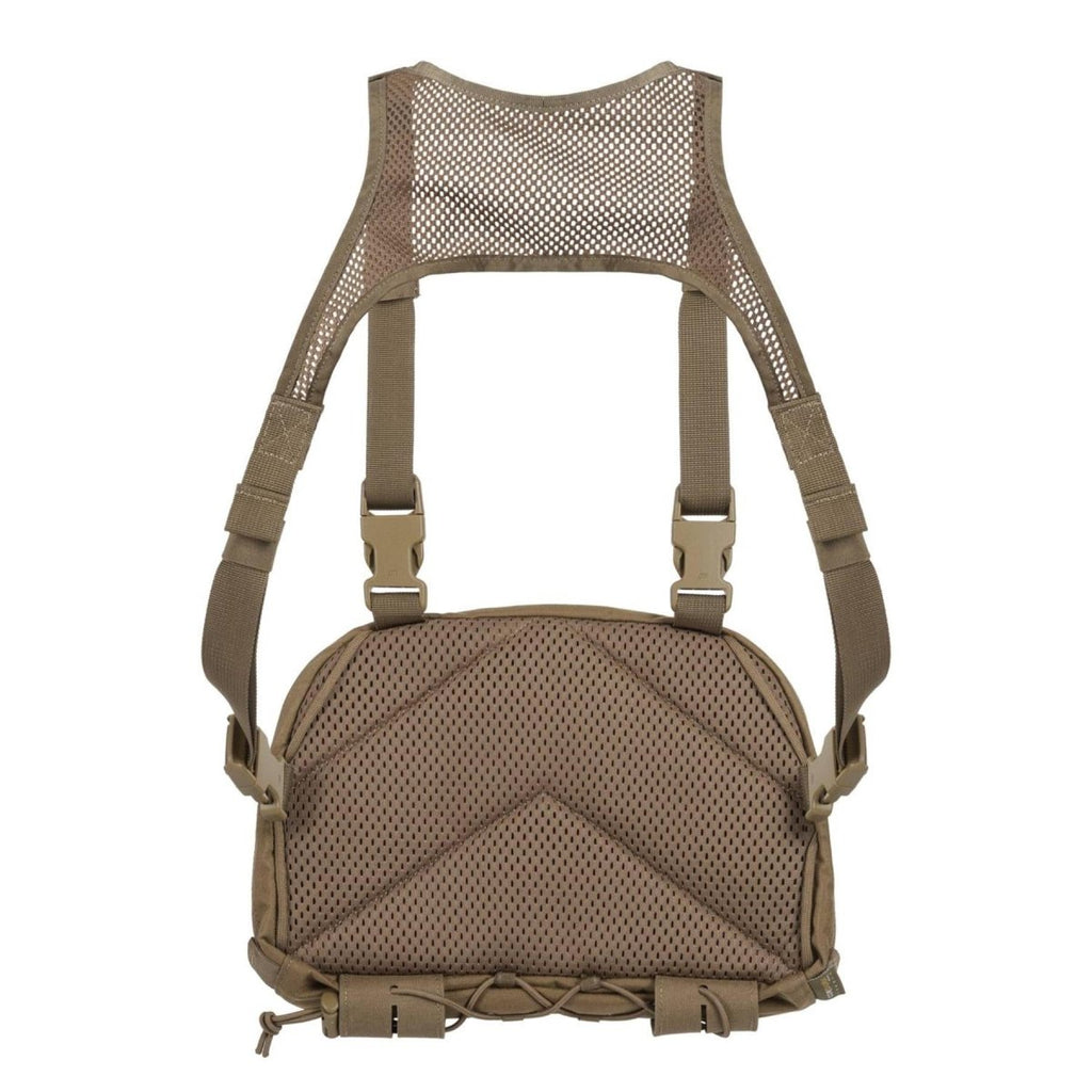 • Dieser taktische Brustrucksack besteht aus robustem 500D Cordura® und bietet verbesserte Haltbarkeit und langlebigen Einsatz. Auf der Vorderseite befinden sich zwei elastische Taschen, die schnellen Zugriff auf häufig verwendete Gegenstände ermöglichen. Darüber hinaus umfasst die MOLLE/PALS-Kompatibilität des Rucksacks Befestigungspunkte an der Vorder- und Unterseite. Dies ermöglicht die einfache Anbringung zusätzlicher Taschen und Zubehörteile.