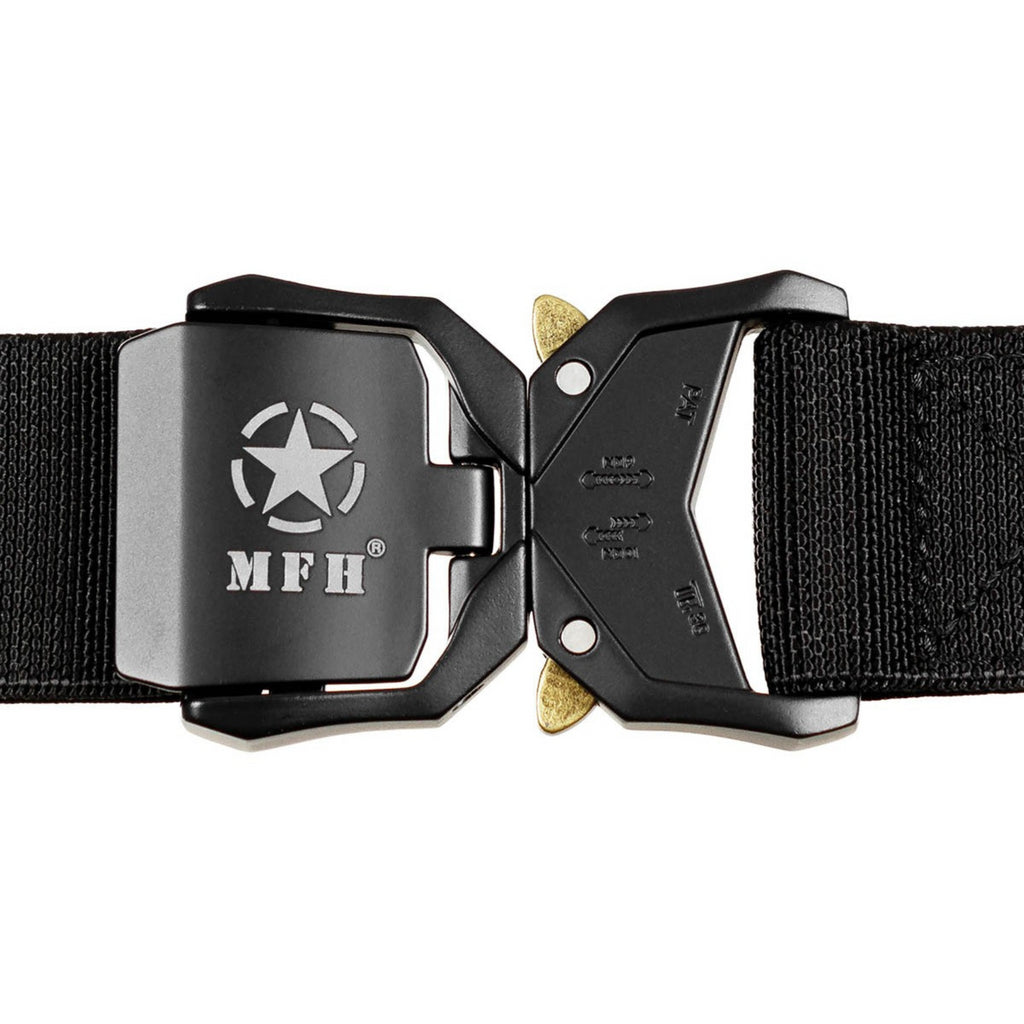 MFH Taktischer Webgürtel mit Schnellverschluss, elastisch, verstellbar, Polypropylen, Schwarz
