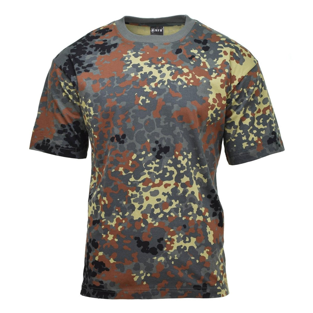 Die Flecktarn-T-Shirts im US-Militärstil der Marke MFH bieten eine perfekte Balance aus Komfort und Stil. Diese T-Shirts verfügen über ein BW-Tarnmuster, das ihnen einen militärisch inspirierten Look verleiht. Die Flecktarn-T-Shirts sind für den Alltag oder Outdoor-Aktivitäten konzipiert und sind somit eine vielseitige Ergänzung für jede Garderobe.