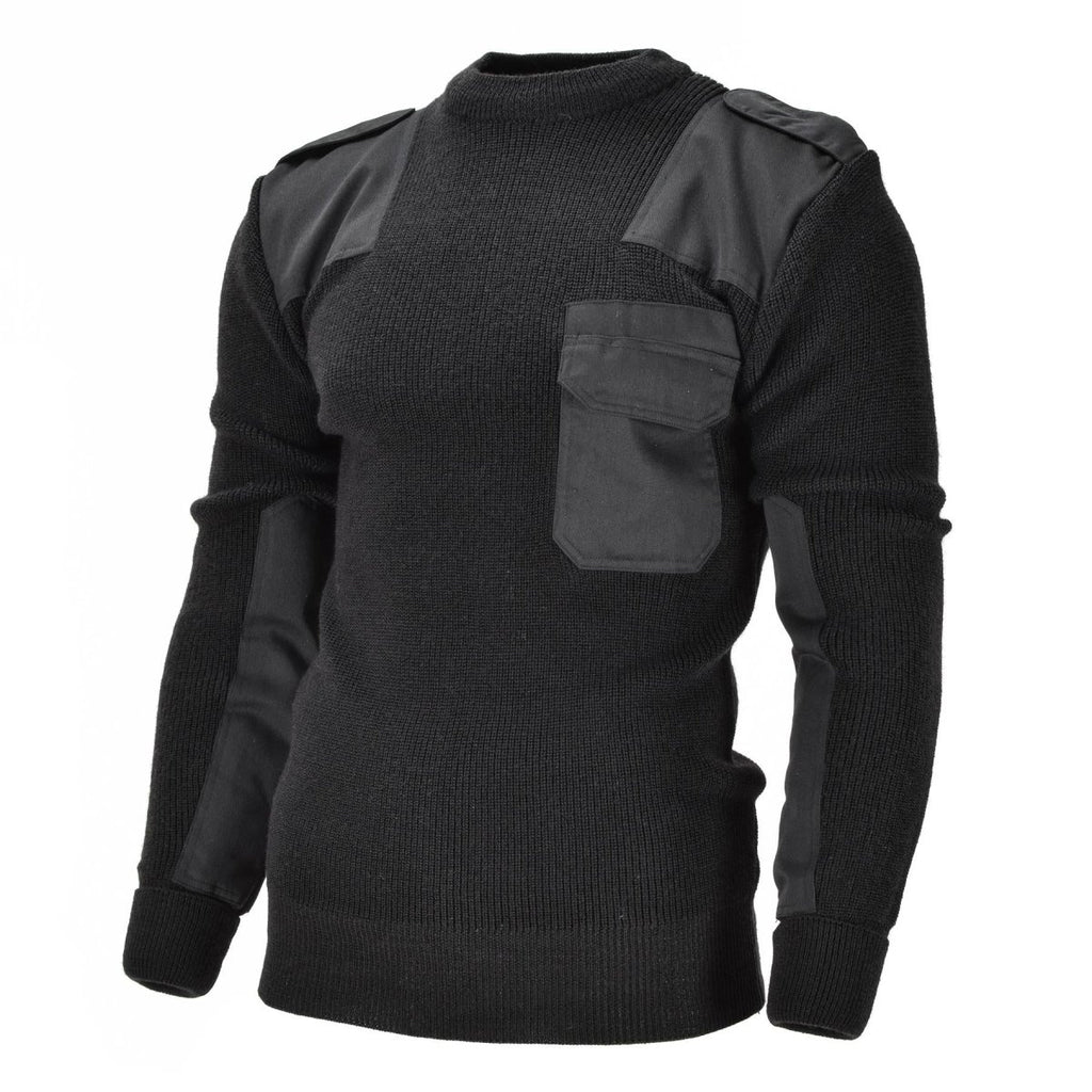 Es handelt sich um eine hochwertige Reproduktion des originalen Bundeswehrpullovers. Dieser Pullover hat ein charakteristisches Rundhals-Design sowie verstärkte Ellbogen- und Schulterpolster sowie Schulterklappen an jeder Schulter. Er ähnelt auch einem lässigen Pullover.