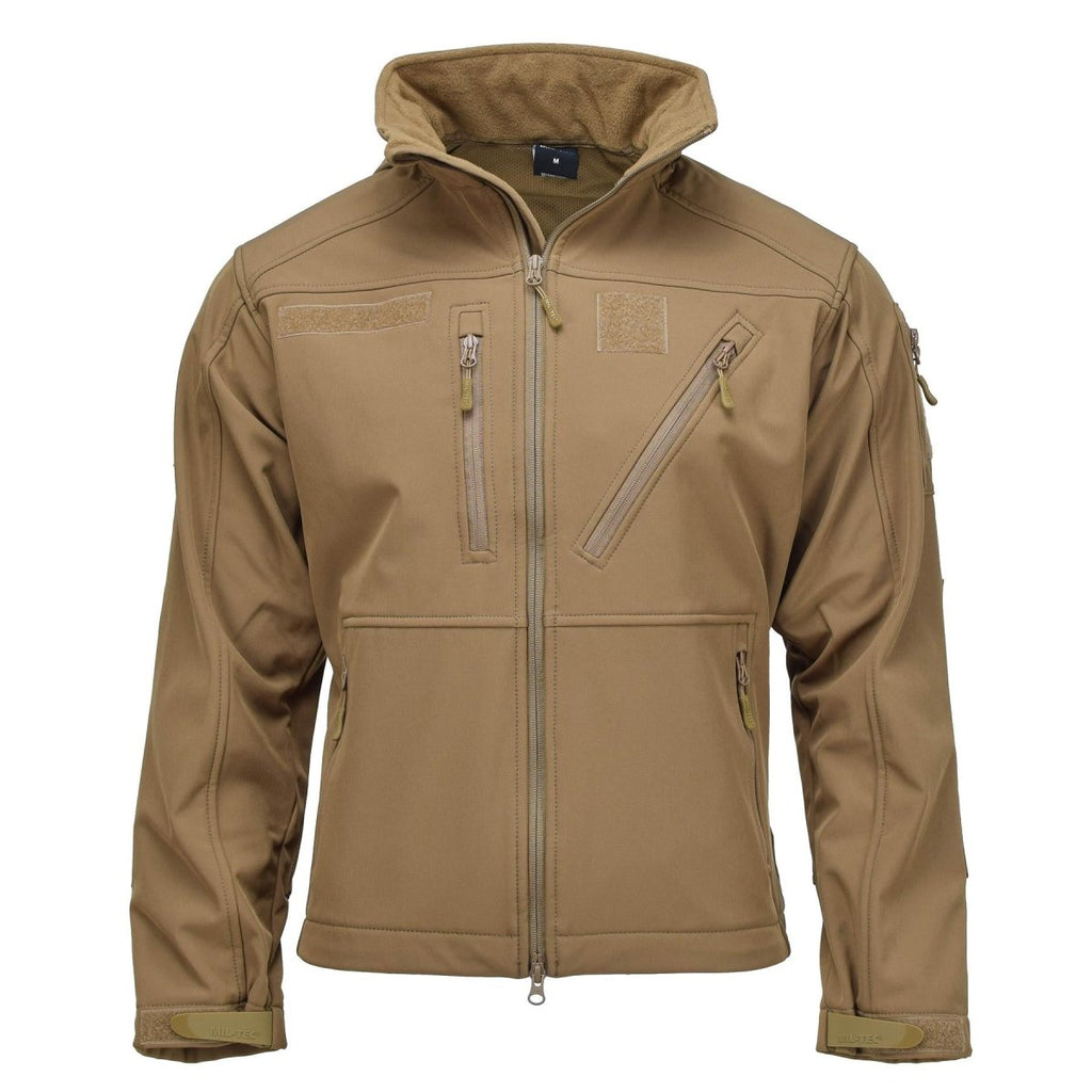 Wir stellen Ihnen die MIL-TEC-Jacke im Militärstil vor, eine schlanke taktische Softshell-Jacke in dunkler Kojotenfarbe. Dieses vielseitige Kleidungsstück verfügt über eine Kapuze für zusätzlichen Schutz und belüftete Achselhöhlen für verbesserte Atmungsaktivität.