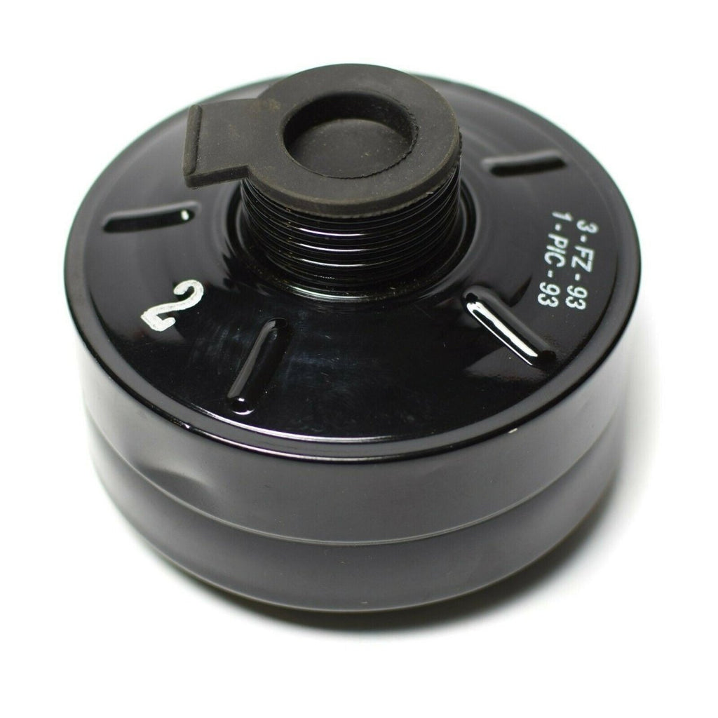 - Mit seinem universellen 40-mm-Gewinde passt dieser Gasmaskenfilter auf die meisten Standardmasken und unterstreicht seine Vielseitigkeit und Kompatibilität. Seine kompakte Größe und langlebige Konstruktion machen es zu einer optisch ansprechenden und praktischen Ergänzung jeder Sammlung. Das ikonische Design bietet einen Einblick in die entscheidende Rolle, die diese Filter beim Schutz von Personen in Umgebungen mit hohem Risiko spielten.