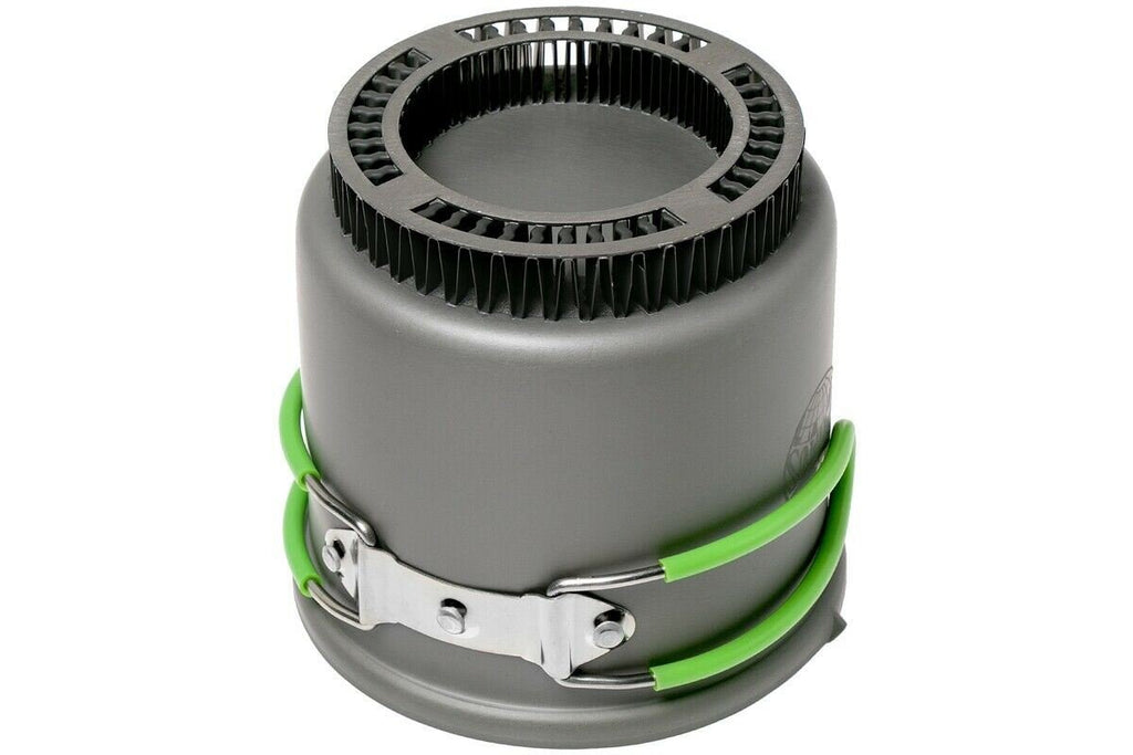 - Das Set umfasst langlebige, leichte Pfannen, die über einen Wärmetauscher für schnelleres und effizienteres Kochen verfügen. Diese Funktion verkürzt die Kochzeit, spart Gas und sorgt für eine gleichmäßige Wärmeverteilung. Mit diesem Kochsystem können Sie ganz einfach Mahlzeiten zubereiten. Und genießen Sie köstliches Essen, egal wo Sie sind.