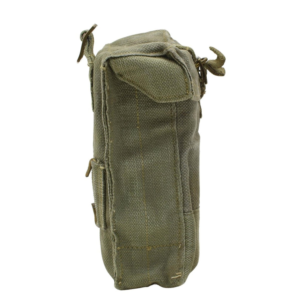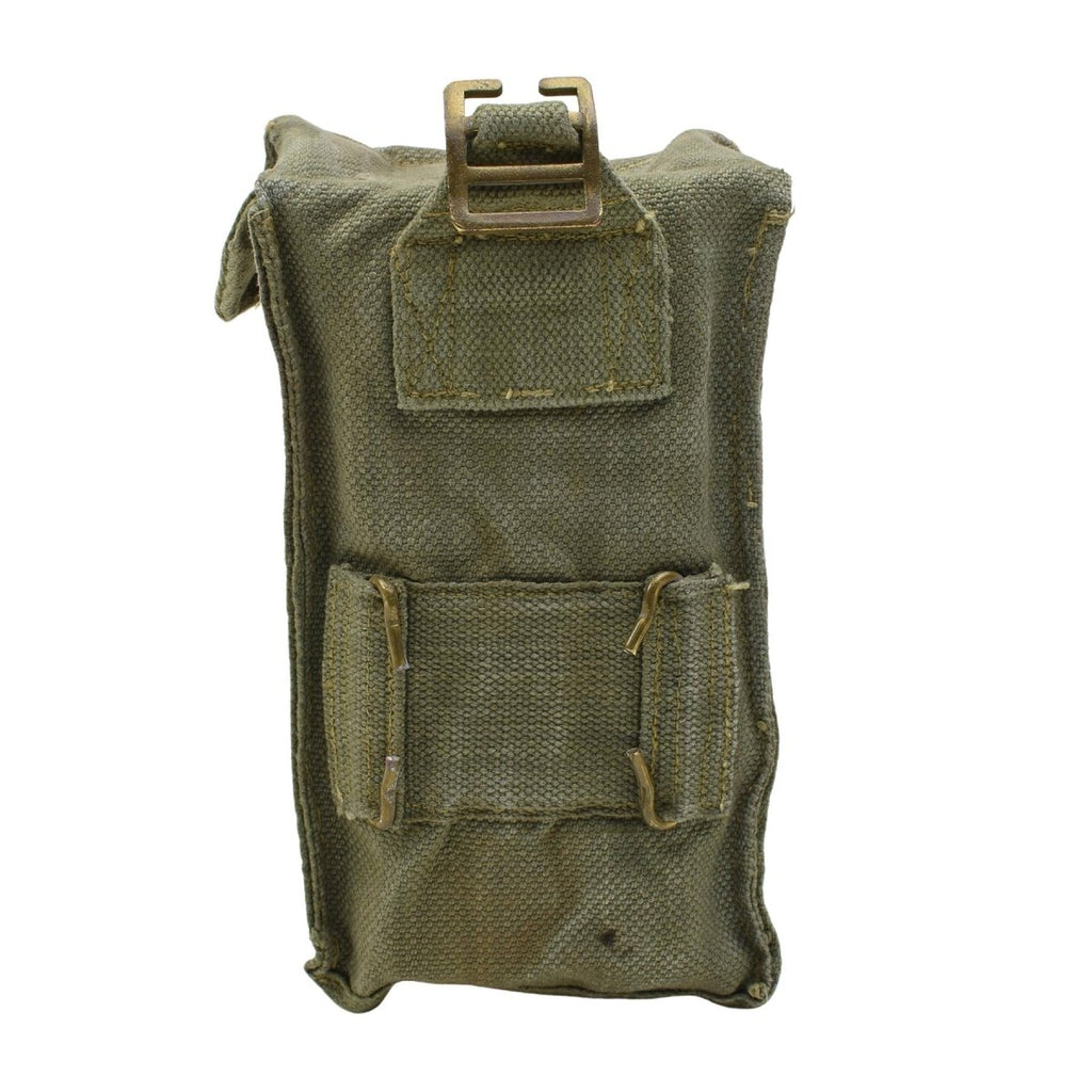 - Diese authentische belgische Militär-Überschusstasche aus dem Jahr 1951 besteht aus 100 % Baumwoll-Canvas und ist für raue Bedingungen konzipiert. Die stabilen Metallschnallen sorgen für einen sicheren Verschluss. Sorgen Sie dafür, dass Ihre Magazine oder Kleingeräte während des Gebrauchs sicher bleiben.