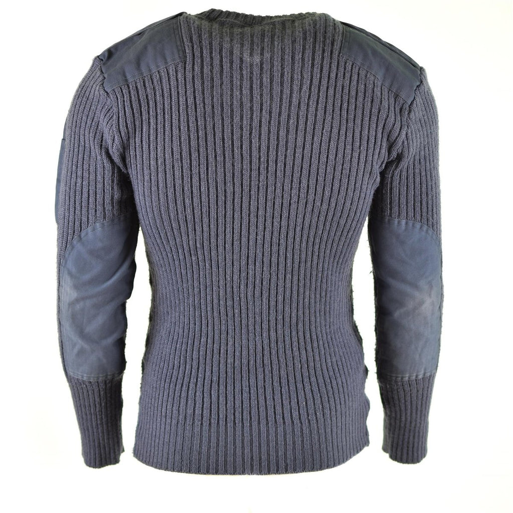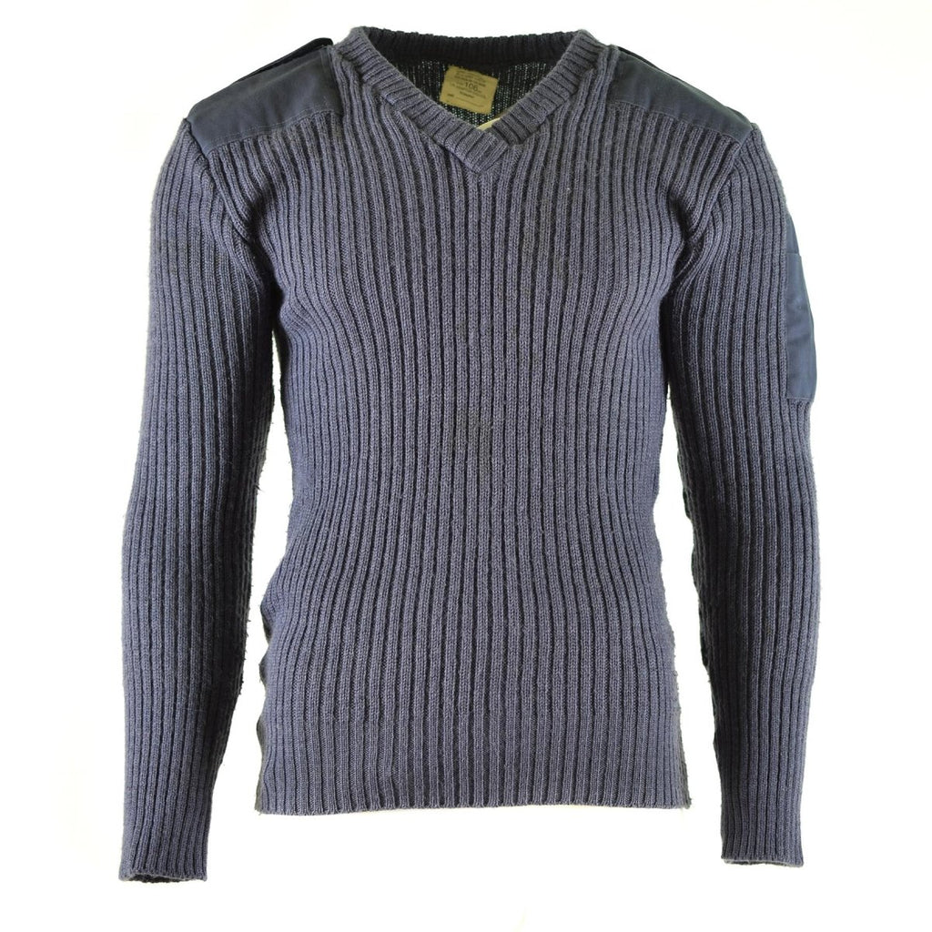 Die grau/blaue Farbe des Pullovers ist ein traditionelles Militärfarbschema und sorgt für einen klassischen, dezenten Look, der sowohl stilvoll als auch funktional ist. Der Pullover verfügt über eine langlebige und robuste Konstruktion mit verstärkten Ellbogen- und Schulterbesätzen, die für zusätzliche Haltbarkeit und Schutz in stark beanspruchten Bereichen sorgen.