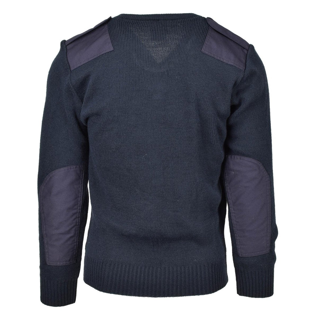 - Das V-Ausschnitt-Design dieses marineblauen Polizeipullovers bietet eine bequeme Passform, während das weiche Wollmaterial für ganztägigen Tragekomfort sorgt. Offiziere schätzen die Praktikabilität des Designs, zu dem auch Schulterklappen für zusätzliche Funktionalität gehören. Diese Schulterklappen dienen der Rangdarstellung und unterstreichen den militärischen Gesamteindruck.