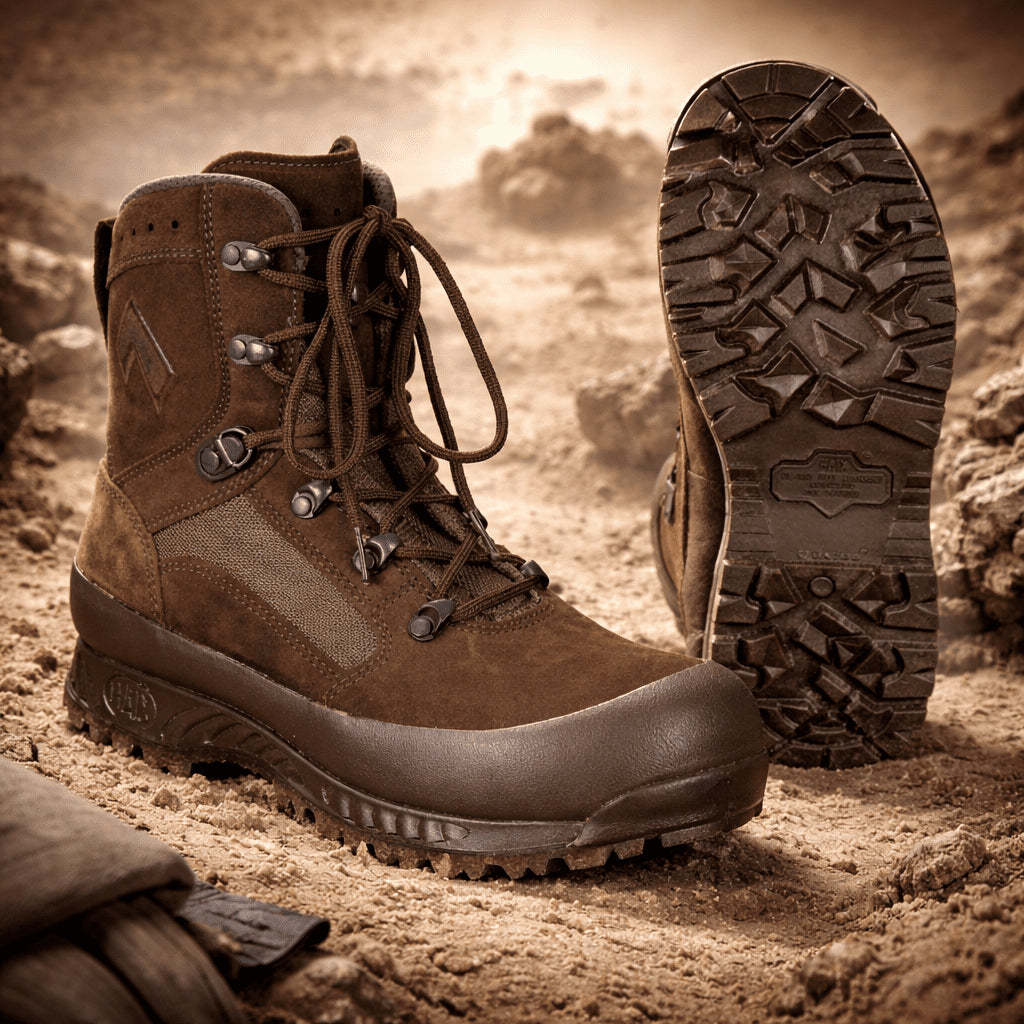 Diese original britischen Militär-Taktikstiefel für Damen von HAIX sind für anspruchsvolle Feld- und Wüstenbedingungen konzipiert. Das High Liability-Modell ist auf militärische Anforderungen ausgelegt und bietet Haltbarkeit, Komfort und zuverlässige Leistung bei längerem Tragen. Die Stiefel bestehen aus einer Kombination hochwertiger Wildleder- und Textilmaterialien und sind sowohl atmungsaktiv als auch wasserabweisend, sodass die Füße in warmen und trockenen Umgebungen trocken und komfortabel bleiben.