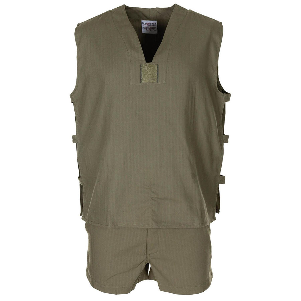 - Das ärmellose, olivfarbene Jungle-Shirt zeichnet sich durch eine vielseitige olivfarbene Farbe aus, die sich nahtlos in die natürliche Umgebung einfügt. Damit ist es perfekt für Abenteuer im Freien.