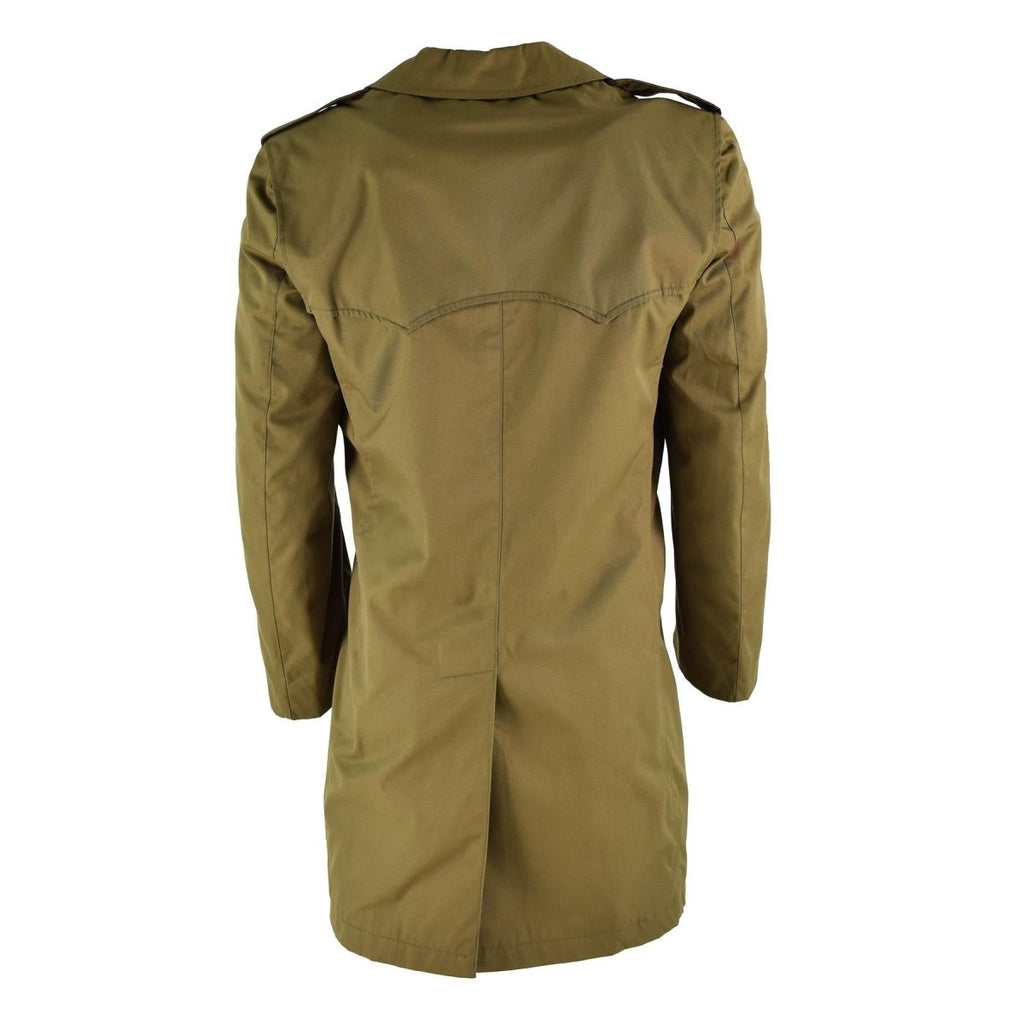 Der originale zweireihige italienische Vintage-Militär-Trenchcoat ist ein Regenmantel, der ursprünglich von italienischen Soldaten getragen wurde. Es besteht aus einem wasserdichten Material und verfügt über ein zweireihiges Design, das zusätzlichen Schutz vor den Elementen bietet. Der Trenchcoat kann auch über verschiedene Taschen und andere funktionelle Merkmale verfügen, um Soldaten bei ihren Aufgaben zu unterstützen. Aufgrund seines militärischen Ursprungs verfügt es möglicherweise auch über eine robuste, langlebige Konstruktion. Es gilt als Vintage, da es sich um einen alten Gegenstand handelt, der als Sammlerstück betrachtet werden kann.