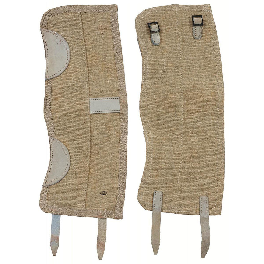 Original italienische Militär-Überschussgamaschen aus strapazierfähigem Canvas-Material. Diese Gamaschen sind zum Tragen über Stiefeln und Unterschenkeln konzipiert und bieten wirksamen Schutz vor Schmutz, Schlamm, Feuchtigkeit und Ablagerungen im Freien.