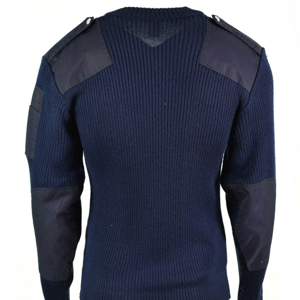 Der dunkelblaue Pullover mit V-Ausschnitt kombiniert militärischen Stil mit praktischem Design. Dieses italienische Militär-Überschussstück bietet hervorragende Haltbarkeit und Komfort.