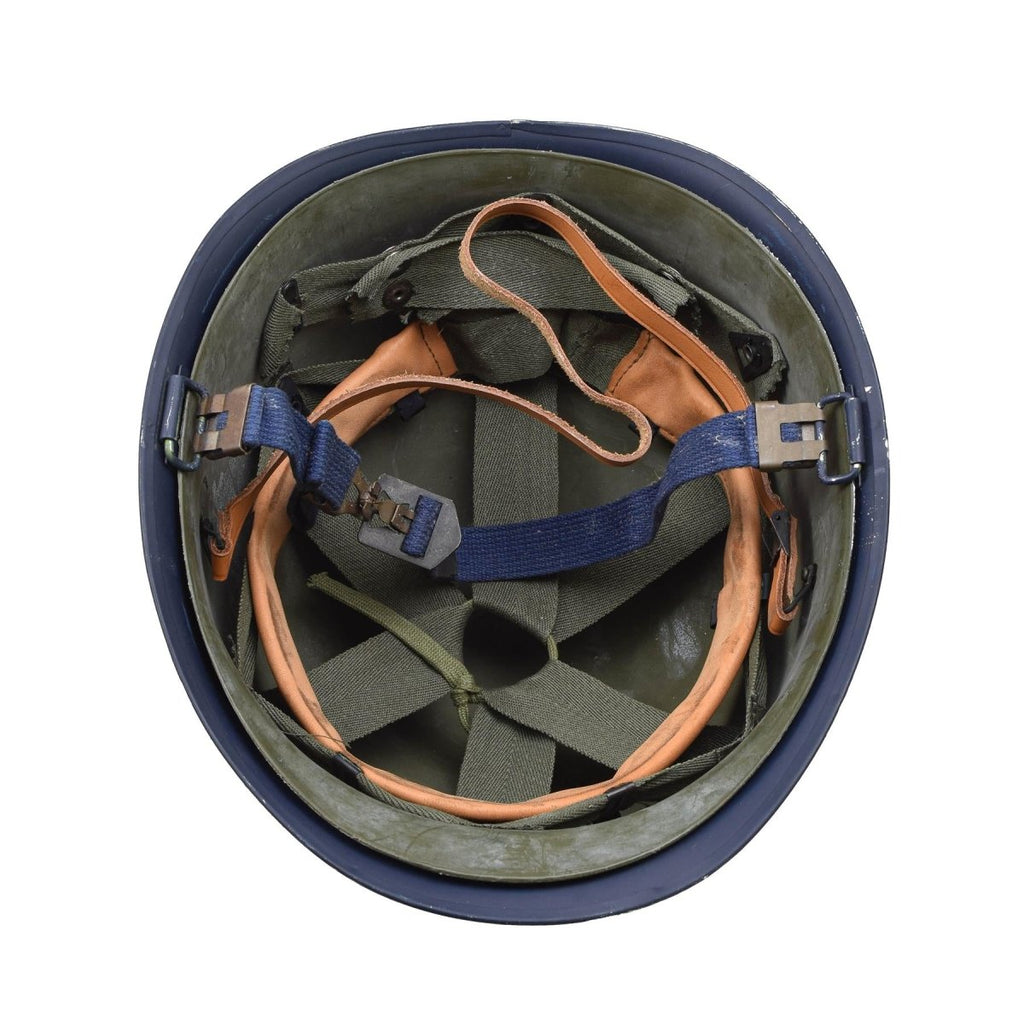 Werten Sie Ihre Sammlung militärischer Erinnerungsstücke mit diesem unverwechselbaren belgischen Original-Militärstahlhelm M51 in auffälligem Blau auf. Dieser Helm mit PVC-Innenfutter ist nicht nur ein Stück Geschichte, sondern auch ein Symbol für Authentizität und Funktionalität.