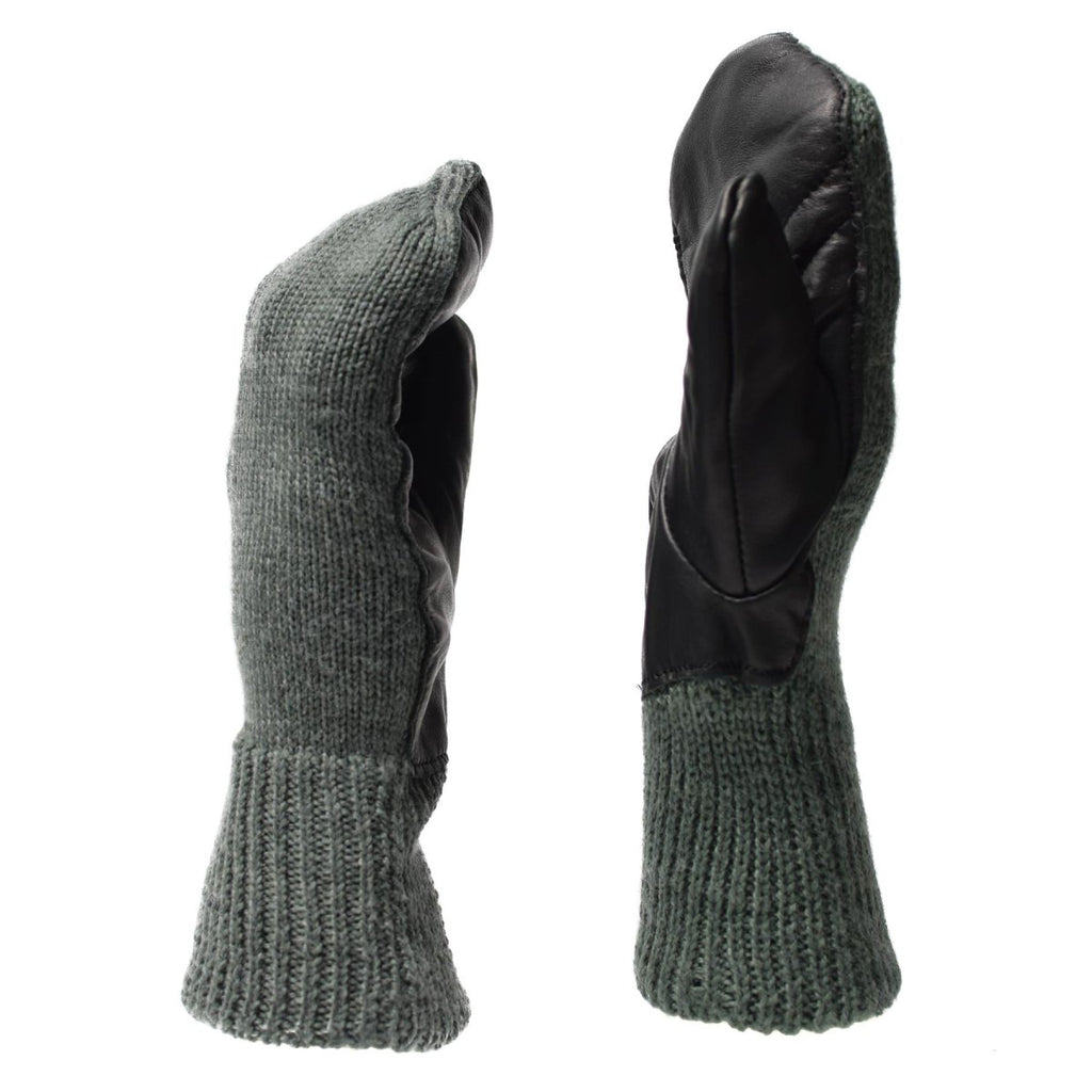 Fäustlinge aus Militärwolle bieten eine perfekte Mischung aus Wärme, Komfort und Haltbarkeit bei kaltem Wetter. Diese originalen Strickfäustlinge aus Schweizer Militärwolle in Grau mit Lederhandfläche bieten hervorragende Isolierung und Schutz.