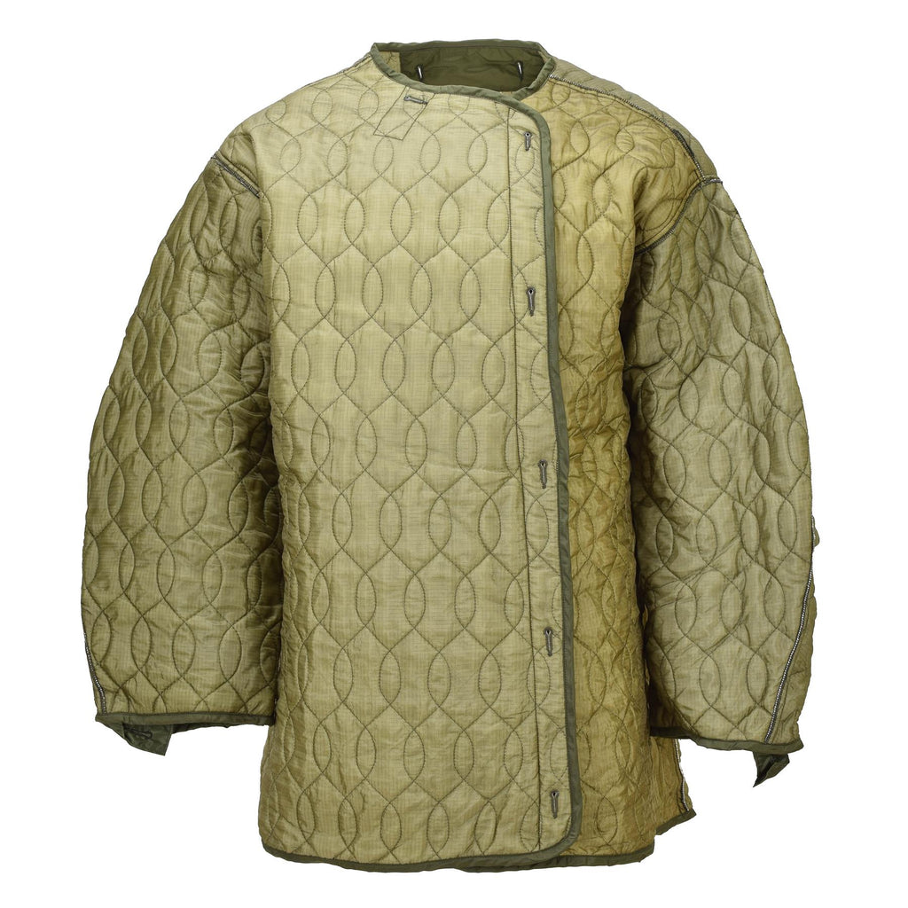 Es besteht aus strapazierfähigem Nylon-Außenmaterial mit gesteppter Isolierung und bietet leichten und dennoch effektiven Wärmeschutz, ohne übermäßig aufzutragen. Die Nähte mit Wellenmuster sorgen für eine gleichmäßige Isolierung und gleichmäßige Wärmeverteilung. Knopfbefestigungen ermöglichen eine sichere Integration in den M65-Parka, während er auch separat als eigenständige leichte Jacke getragen werden kann.