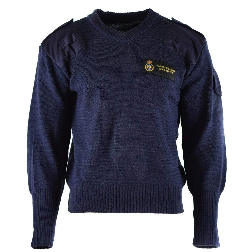 Original britischer Pullover Commando Jumper des Verteidigungsdienstes, blauer Pullover mit V-Ausschnitt