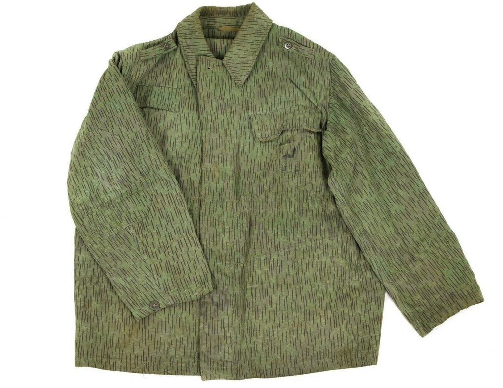 Diese Regentropfen-Camouflagejacke ist sowohl ein funktionelles Outdoor-Essential als auch ein Stück Militärgeschichte. Ob in der Wildnis oder auf den Straßen der Stadt, es sorgt dafür, dass Sie sich wohlfühlen, vorbereitet und für jedes Abenteuer bereit sind.