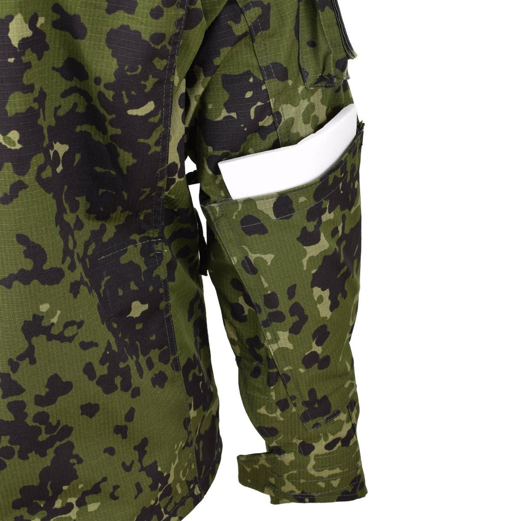 • Erstens weist das M84-Kampfhemd ein charakteristisches dänisches Militärtarnmuster auf. Dieses Muster erhöht seine Einsatzmöglichkeiten bei verschiedenen Outdoor-Aktivitäten wie Jagen, Wandern und Camping. Darüber hinaus ermöglicht die geknöpfte Vorderseite ein einfaches An- und Ausziehen, während die verstärkten Ellbogen zusätzliche Haltbarkeit und Schutz bieten.