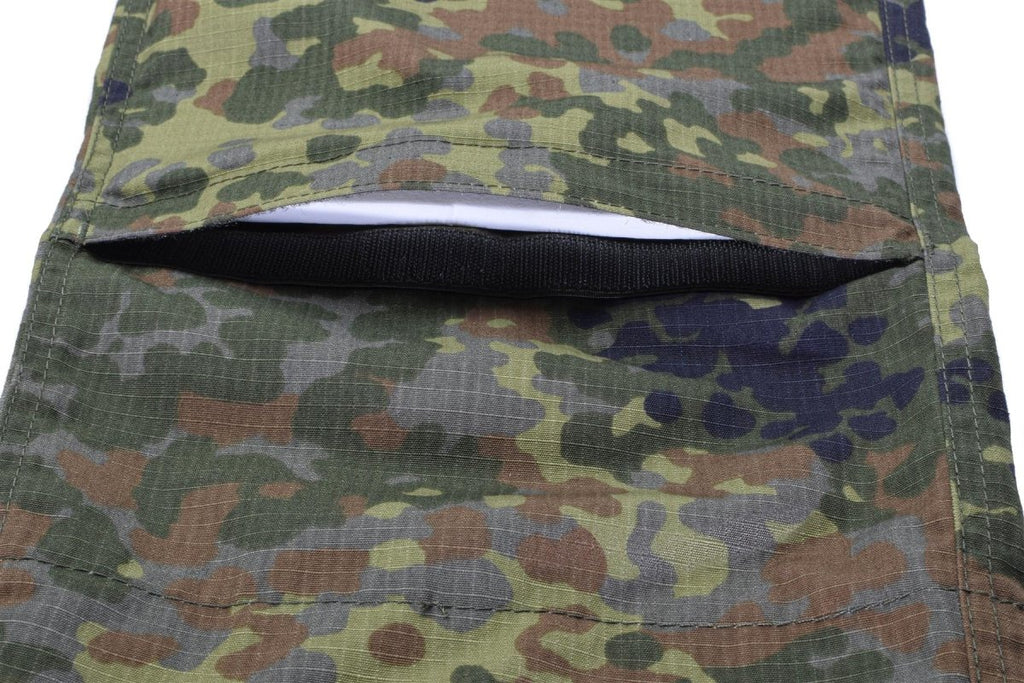 • Diese aus hochwertigem Ripstop-Material gefertigte Flecktarn-Cargohose ist reißfest und hält starker Beanspruchung stand. Der verstärkte Sitz und die Knie sorgen für zusätzliche Haltbarkeit und machen sie ideal zum Krabbeln, Knien oder für intensive Aktivitäten. Das Flecktarn-Tarnmuster fügt sich nahtlos in die natürliche Umgebung ein und sorgt für eine wirkungsvolle Tarnung in Waldgebieten.