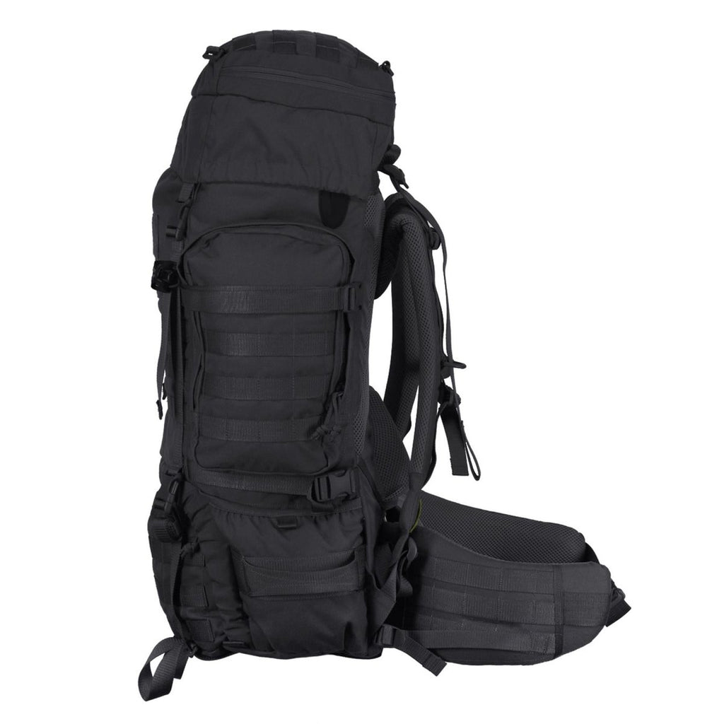 • Dieser Rucksack verfügt über eine verstellbare Rückenlänge, die eine individuelle, auf Ihre Bedürfnisse zugeschnittene Passform ermöglicht. Der abnehmbare, gepolsterte Hüftgurt erfüllt einen doppelten Zweck: Er fungiert im abgenommenen Zustand als Kriegergürtel. Der Rucksack verfügt über Seitentaschen mit einem externen MOLLE-System, sodass Sie zusätzliche Ausrüstung für einfachen Zugriff anbringen können. Kompressionsgurte an den Seiten und am Boden halten Ihre Ladung stabil und sicher, egal wie unwegsam das Gelände ist.