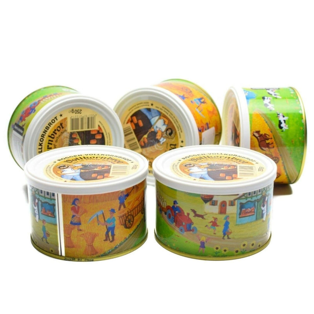 Kompakt und haltbar: Durch die Dosenform bleibt das Brot frisch und ist vor Umwelteinflüssen geschützt, sodass es sich für eine längere Lagerung eignet.