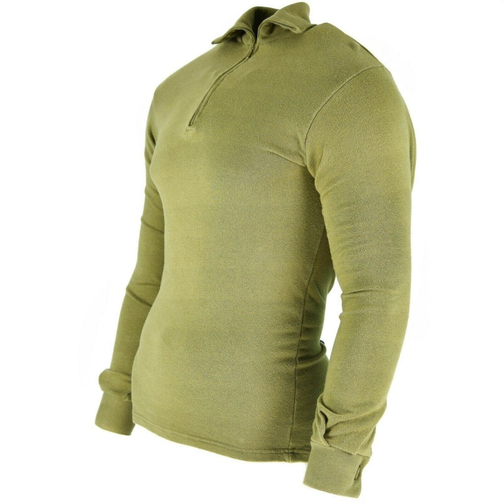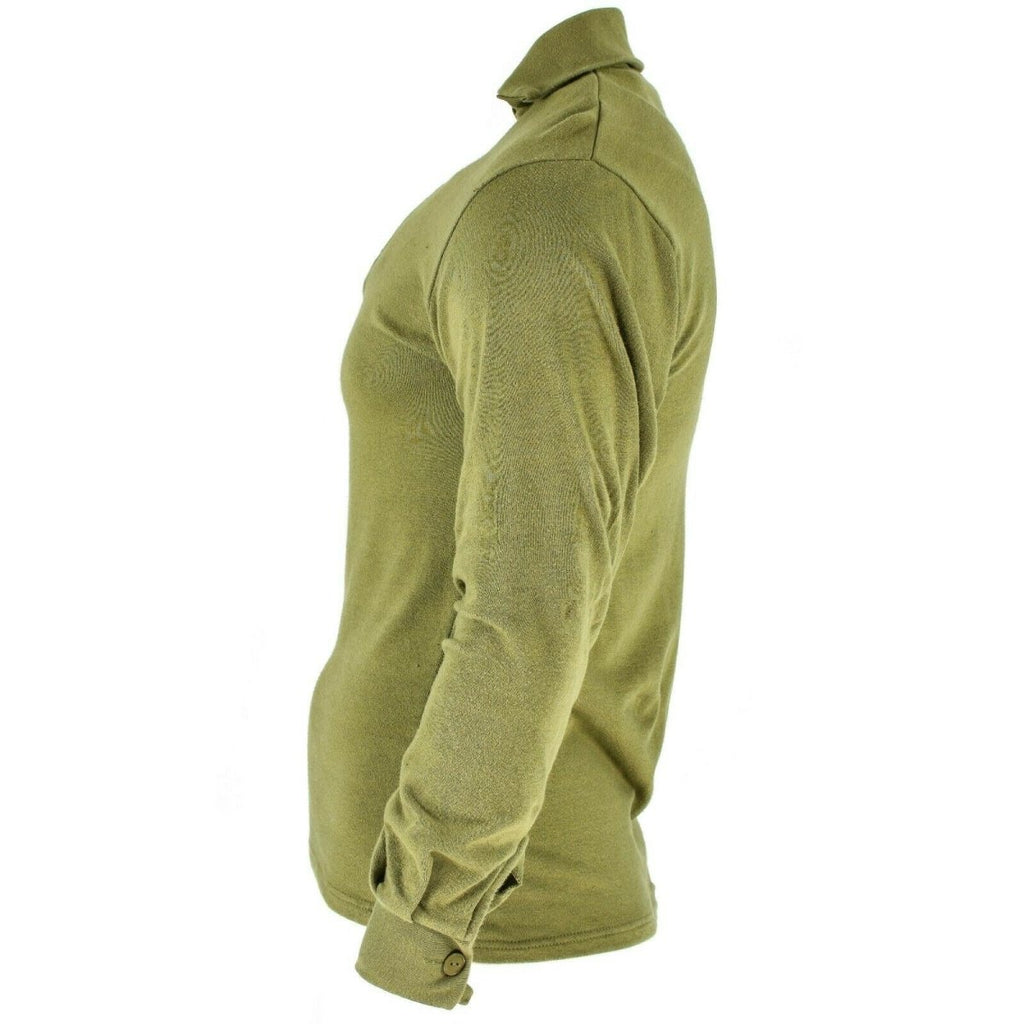 Original britisches Militär-Trikot-Unterhemd mit Reißverschluss in praktischem Green OD (Olive Drab) – eine vielseitige und unverzichtbare Ergänzung zu Ihrer Outdoor- oder Militärausrüstung, die sowohl Wärme als auch Komfort bietet. Dieses Unterhemd ist mehr als nur eine Unterschicht; Es repräsentiert das militärische Erbe, die Funktionalität und die Anpassungsfähigkeit Großbritanniens unter schwierigen Bedingungen.