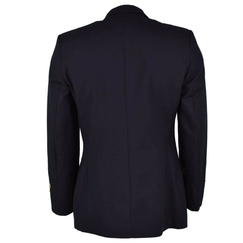Insgesamt kombiniert die marineblaue Jacke klassischen Militärstil mit moderner Zweckmäßigkeit. Es ist perfekt für formelle Veranstaltungen oder jeden Anlass, der einen Hauch von Eleganz erfordert. Die blaue Farbe, die als tiefes Marineblau erscheint, verstärkt seinen vielseitigen Reiz. Ob für feierliche Anlässe oder um Ihrer Kollektion eine vornehme Note zu verleihen, diese Jacke bietet sowohl Stil als auch Funktion.