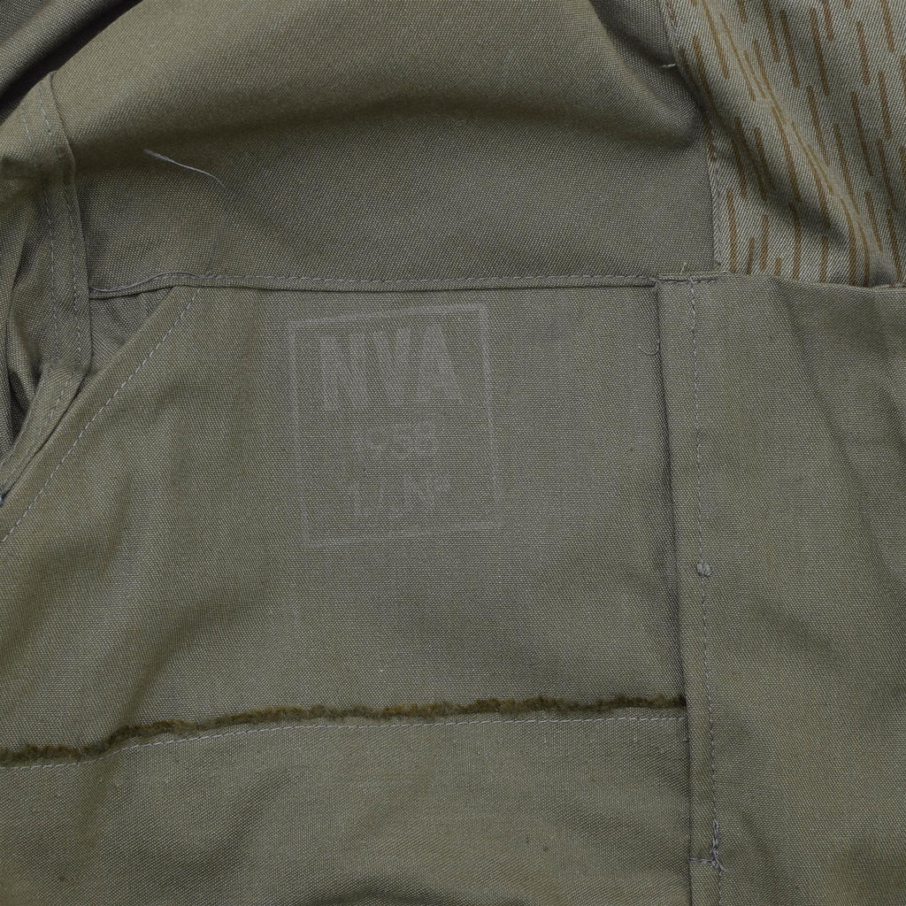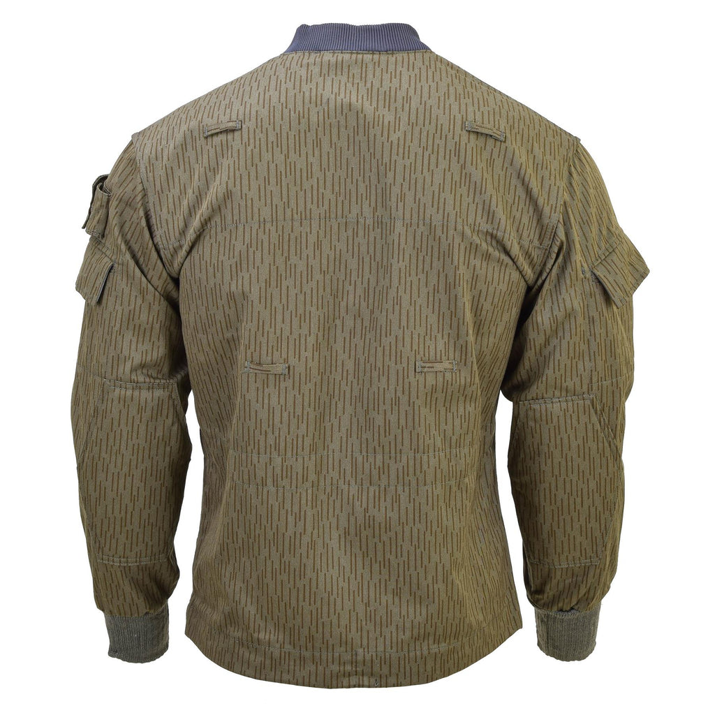 - Das einzigartige Regentropfen-Tarnmuster verleiht der Jacke einen militärisch inspirierten Touch. Dieses Muster, das ursprünglich für die deutsche Volksarmee entworfen wurde, macht diese Jacke sowohl praktisch als auch historisch bedeutsam. Egal, ob Sie Militärandenken sammeln oder einfach den Vintage-Militärstil lieben, diese Jacke ist ein klares Statement.