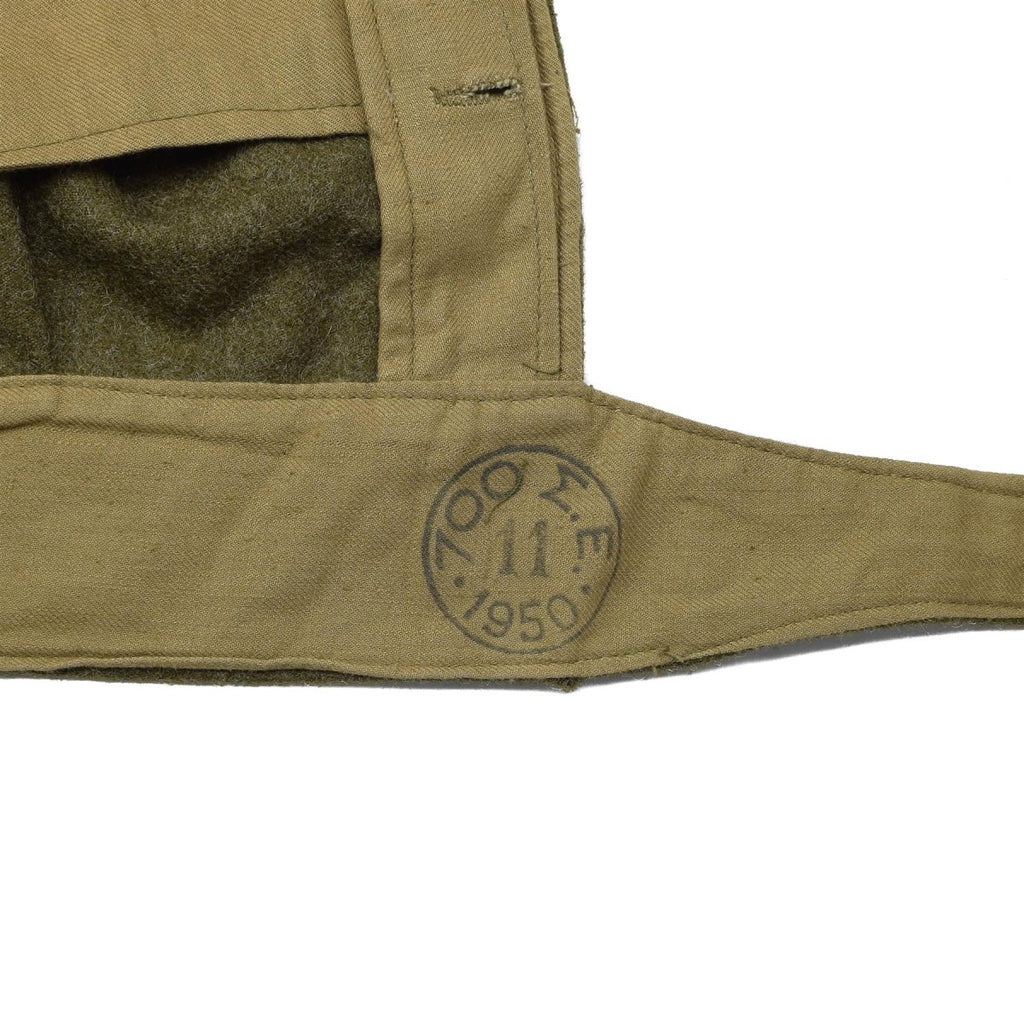 - Die Jacke verfügt über einen klassischen Kragen und Manschetten, die dem militärisch inspirierten Design Raffinesse verleihen. Die geknöpfte Vorderseite ermöglicht ein einfaches Schließen, während die verstellbare Taille für eine individuelle Passform sorgt. Für maximalen Komfort können Sie es nach Ihren Wünschen anpassen. Diese 1950 hergestellte Jacke hat eine reiche Geschichte und verleiht Ihrer Garderobe Vintage-Charme.
