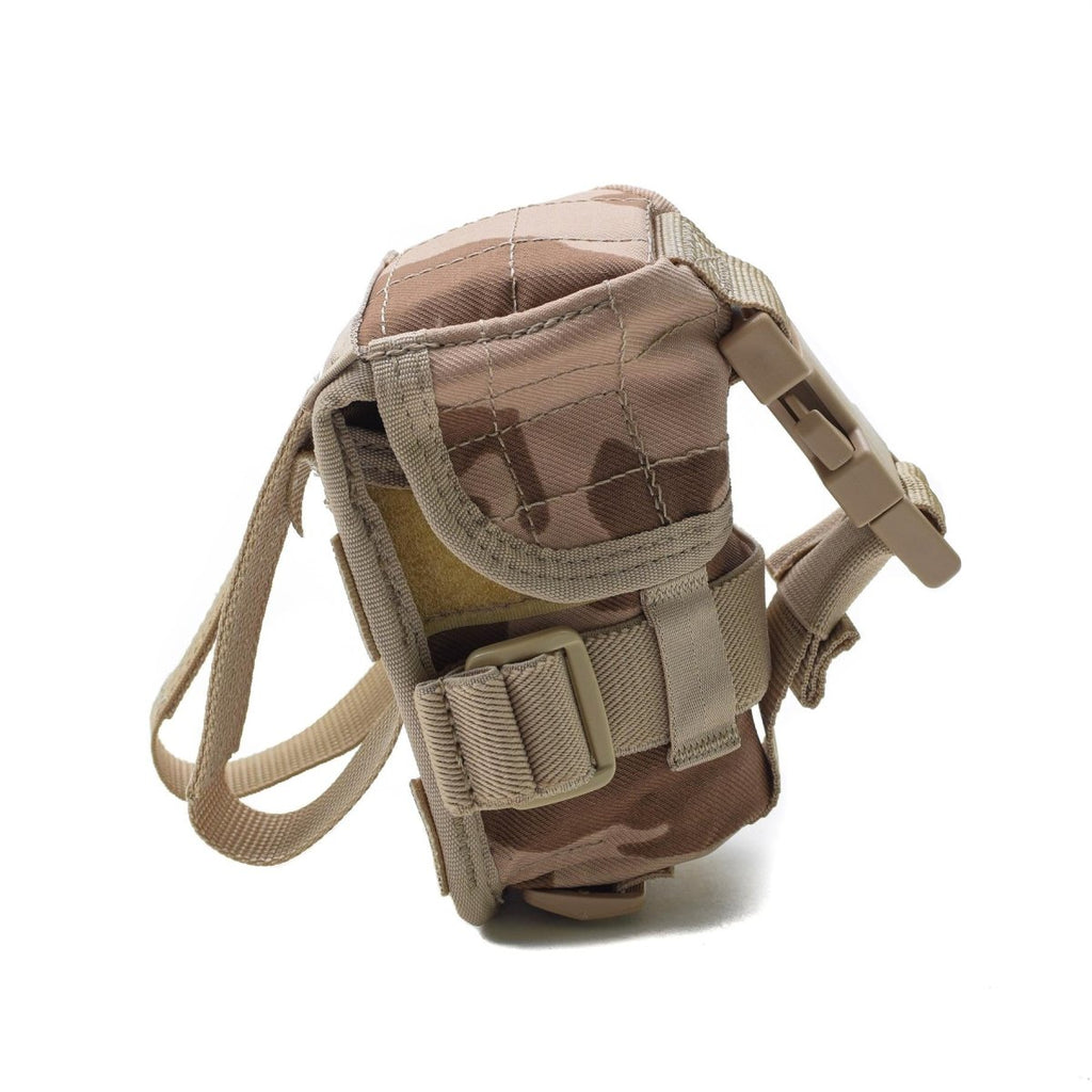 - Diese aus strapazierfähigem, leichtem Material gefertigte Tasche bietet Stabilität und Zuverlässigkeit. Es verfügt über ein Wüstentarnmuster, das sich gut in verschiedene Umgebungen einfügt, insbesondere in trockenen Gebieten. Der Beutel verfügt über einen Schnallenverschluss, der dafür sorgt, dass Ihre Gegenstände unterwegs sicher bleiben.